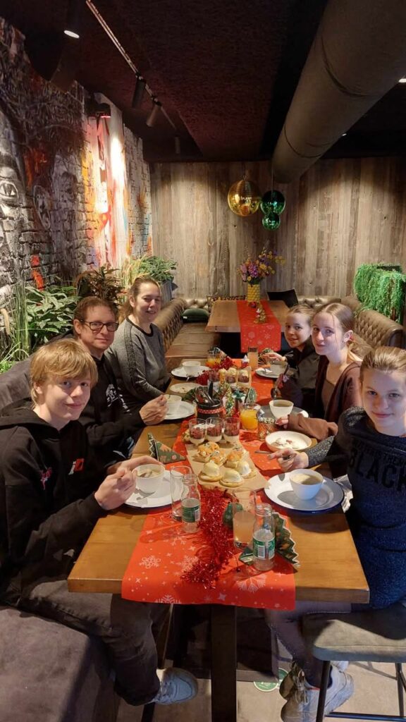 Aan lange tafels zaten mensen gezellig samen. Er werd gegeten, gelachen en vooral: even niet gedacht aan wat er ontbreekt. Het eten was goed, de bediening vriendelijk en de sfeer oprecht warm. Geen haast, gewoon samen aan tafel.