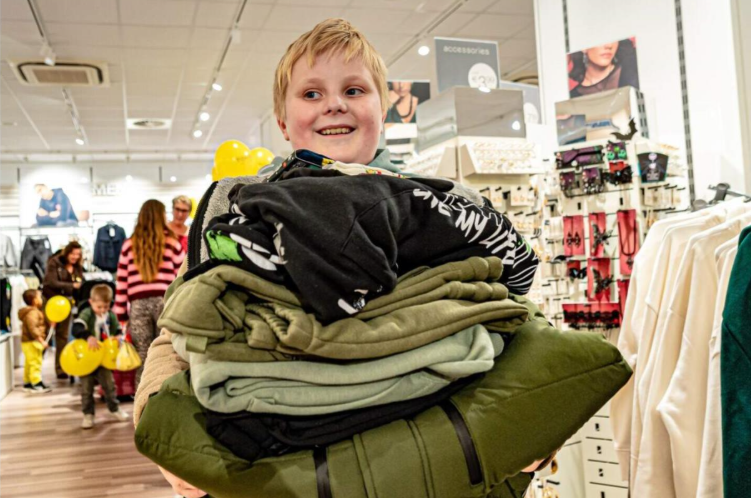 De kinderen kunnen hun geluk niet op. Hun kleding komt doorgaans uit een zak, is al gedragen door neefjes of nichtjes of door kinderen van vrienden. En anders komt het van de kringloop. Martine: ,,Nu is het nieuw en mogen ze het ook nog zelf uitkiezen. Dat is geweldig voor ze.”