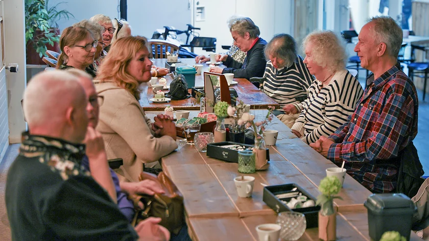 In wijkcentrum De Eenhoorn aan het Verdronkenoord klinkt dinsdagochtend 30 september gezellig geroezemoes. Bezoekers zitten aan een lange tafel en genieten van koffie, gebak én elkaar. En precies dat is de bedoeling, want een gezamenlijke gebakjesactie van Humanitas, Doesgoed, WonenPlus, WelzijnWonenPlus en diverse wijkcentra brengt vrijwilligers en (eenzame) inwoners bij elkaar. Een van die inwoners is Nel Gaarthuis.