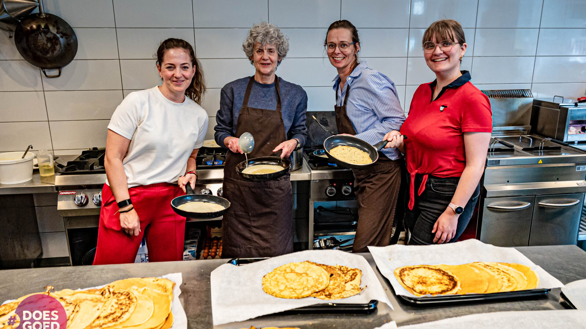 20 maart was het weer zover: de jaarlijkse Pannenkoekdag van Stichting Doesgoed. Niet met kinderen achter het fornuis, maar met meer dan 80 betrokken ondernemers die de handen uit de mouwen staken voor zorglocaties in Alkmaar en Dijk en Waard. Samen bakten zij ruim 6.000 pannenkoeken, verspreid over diverse zorginstellingen. Een dag vol verbinding, glimlachen en natuurlijk heerlijke pannenkoeken.